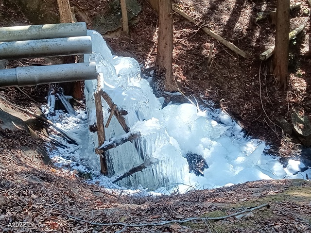一か月前に登った本宮山の日陰の凍った湧き水(この日は寒かった)
