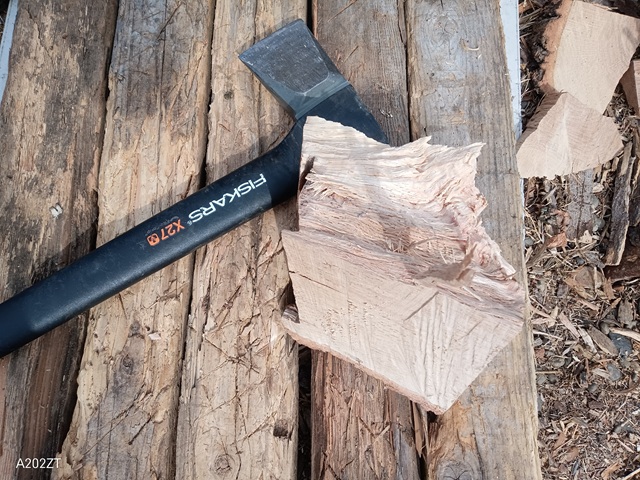 ねじ曲がった所や枝分かれ部分なので割るというより繊維をかち割り切るといった感じで疲れる。