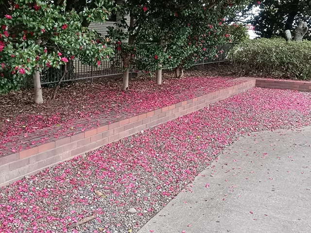 駐車場から歩く図書館の入り口の手前はこんな感じ。